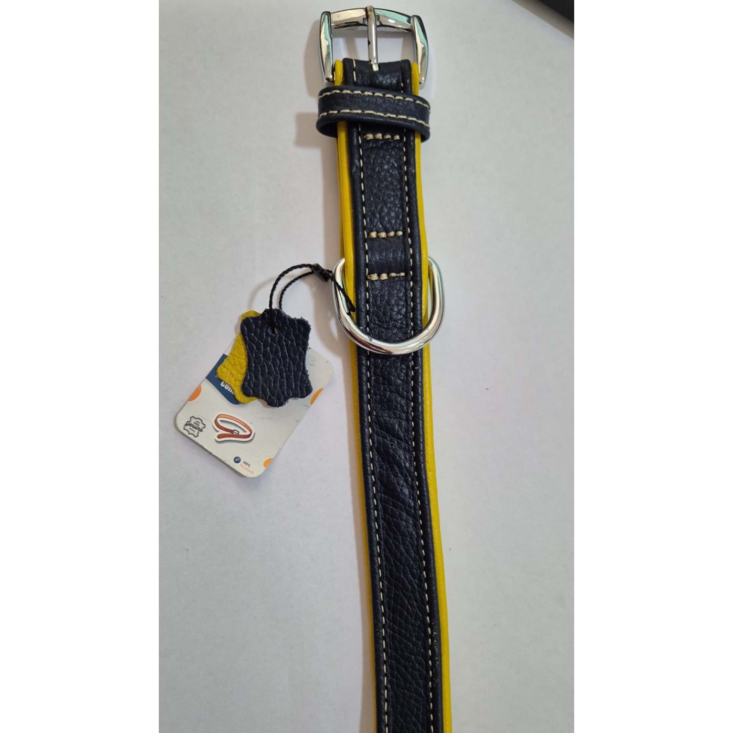 FLARİTON DERİ BOYUN TASMASI LACİVERT SARI 63 CM (ZB335-NY)